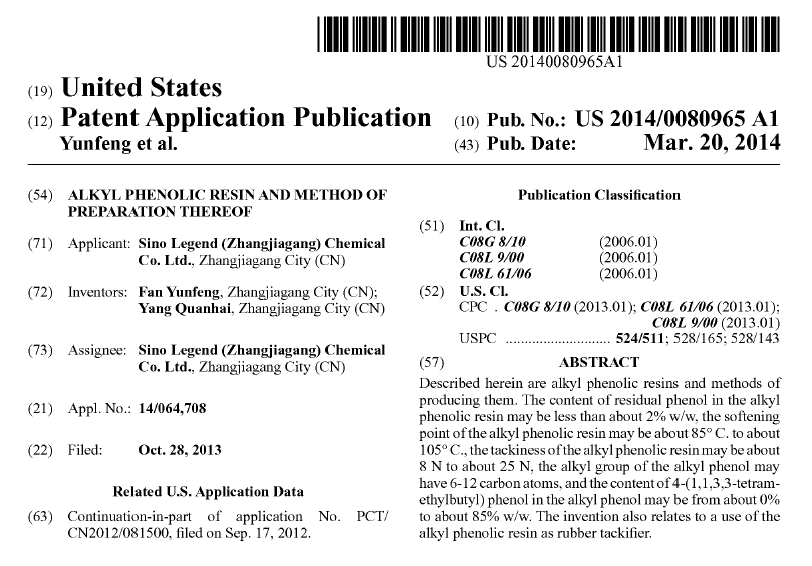 日前,我司于2013年向美國商專局提交的專利申請 “Alkyl Phenolic Resin and Method of Preparation Thereof”喜獲授權(US20140080965),實現了我司發明專利在境外正式授權的突破。